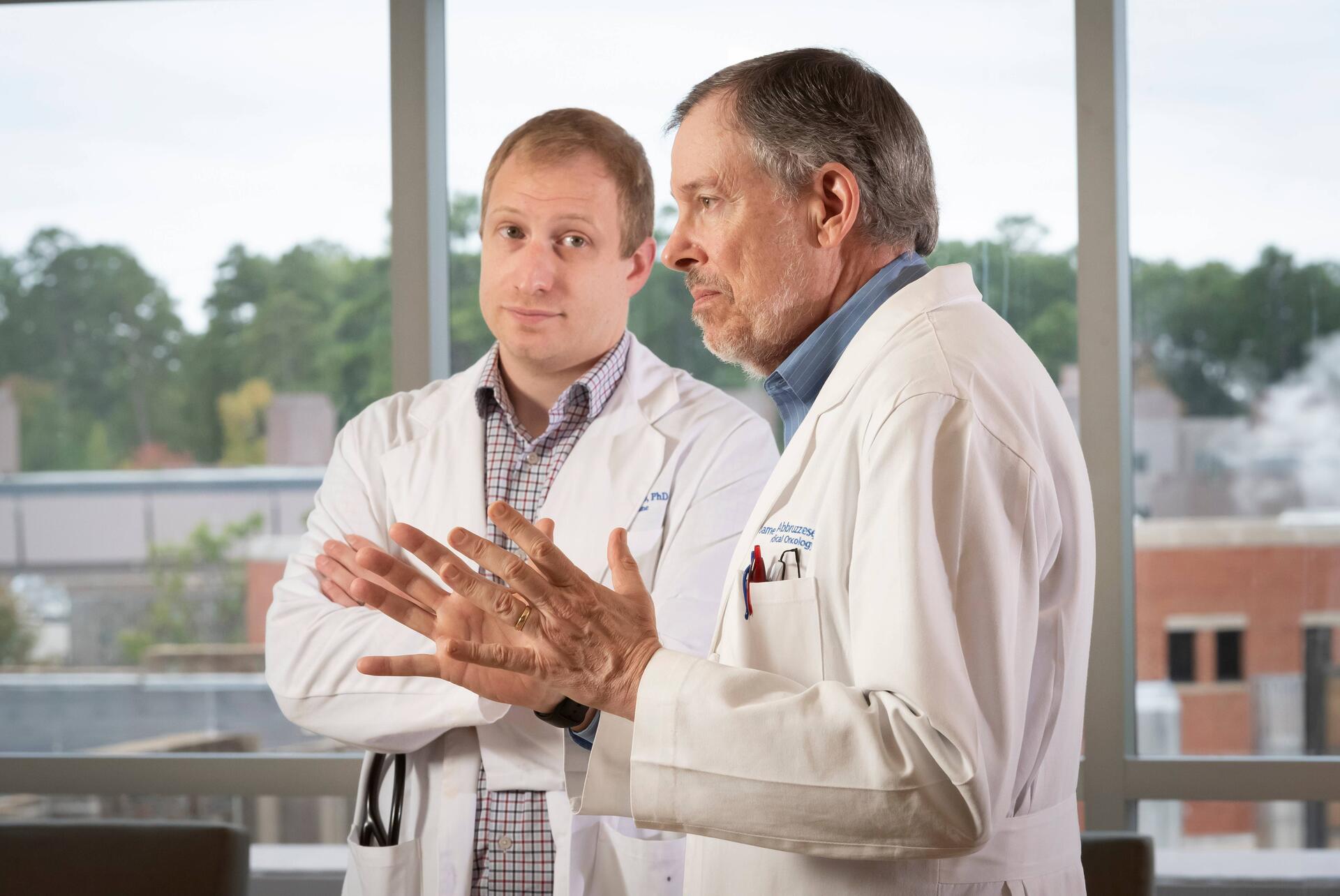 To make outcomes better, researchers around the world are trying to find a marker from blood or some other bodily fluid that would reliably diagnose pancreatic cancer in its early stages, said Jim Abbruzzese, MD, Duke Cancer Institute Distinguished Professor of Medical Oncology. Abbruzzese sees promise in a test that has been studied in the lab of Chris Counter, PhD, George Barth Geller Distinguished Professor of Pharmacology. Abbruzzese and hematology/oncology fellow Ryne Ramaker, MD, PhD, are beginning work to translate it to patients.